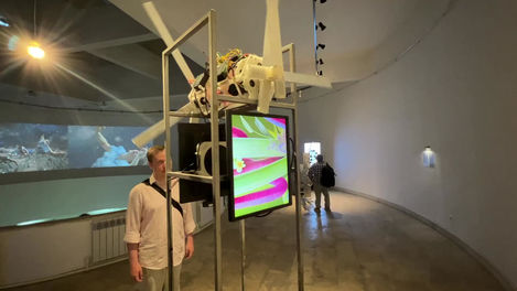 The totem consists of a clock mechanism, a monitor, and hidden video camera. It is a symbolic representation or embodiment of the concept of time and serves as a reminder of its flow, the impermanence of life or the cyclical nature of existence. Standing in front of it, the visitors speeds up the clock with their presence — the more they stand, the faster the hands spin, the ticking sound speeds up, their image on the monitor screen breaks up into pixels and disappears completely. When the visitors leave, the clock returns to the original local time position.